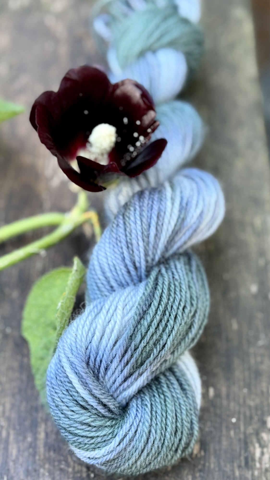 🌱 From seed to bloom, from petal to yarn — these hollyhocks gave me this soft skein of blues and greens. 🧶✨ Natural dyeing is pure garden magic.